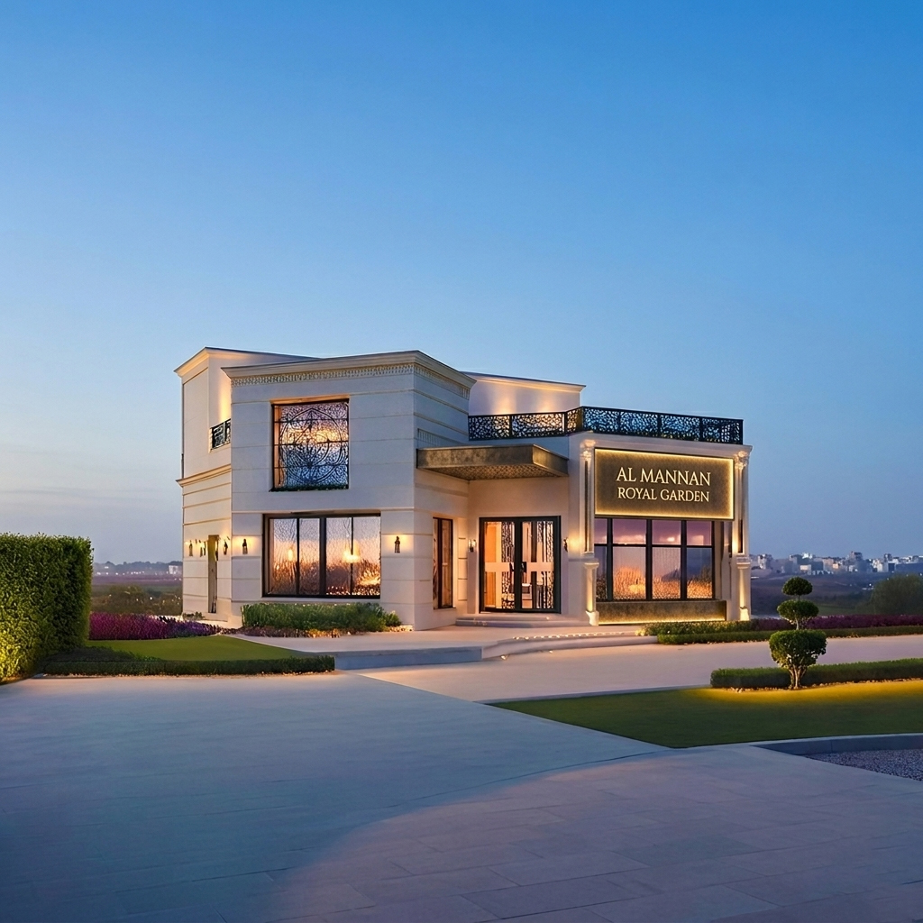 Al-Mannan Royal Garden is a modern residential project launched in 2024, located in Jalalpur Pirwala near Sukkar Interchange on the Main Bypass Road, spread over 2 square kilometers. The project includes schools, parks, a mosque, Royal Market, graveyard, and an 80-foot-wide main boulevard. Commercial plots (2, 4, and 6 marla) and residential plots (5, 6, 7, 8, 10, 15, and 20 marla) are available on cash payment or easy 2-year installment plans with 25% down payment.